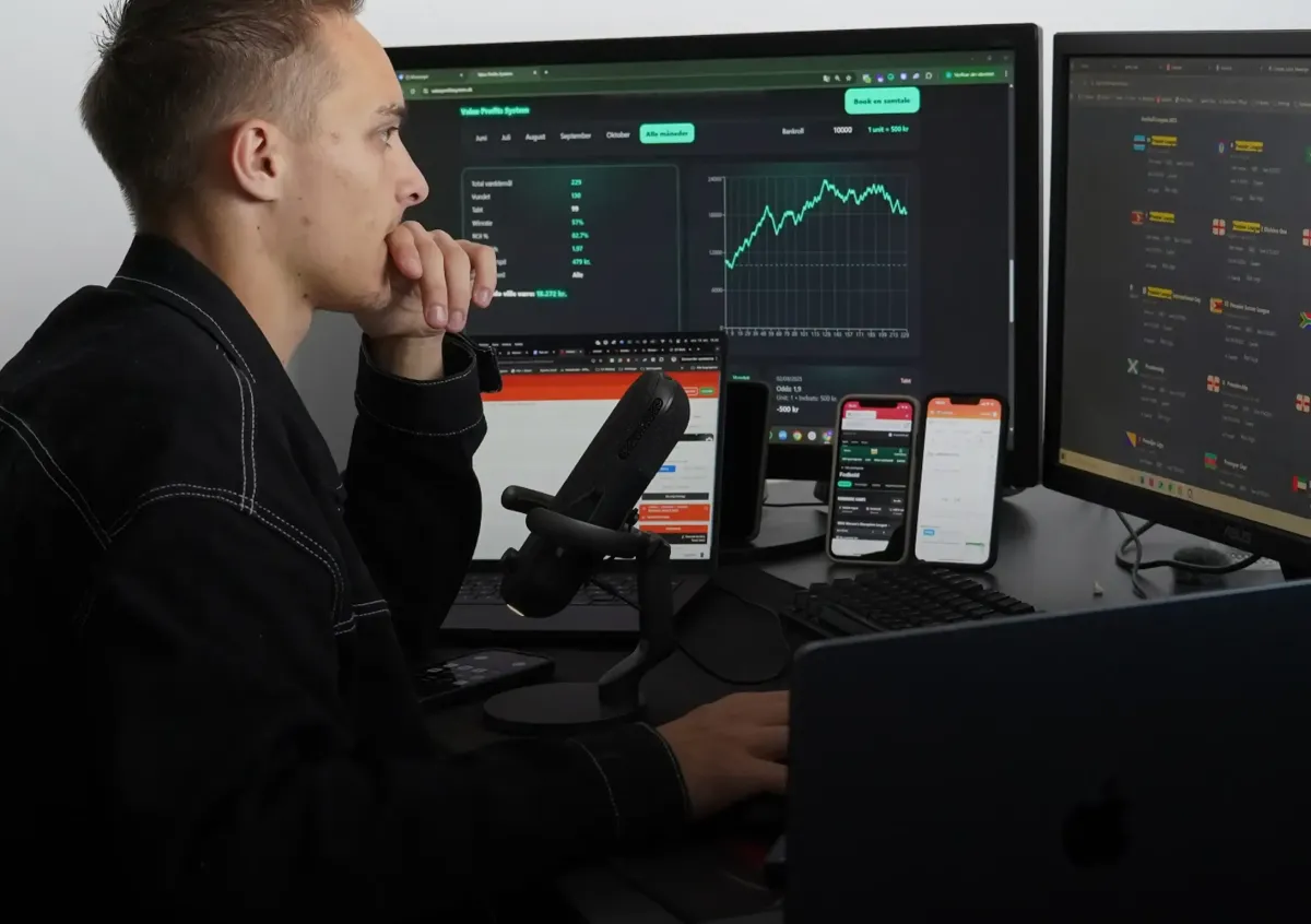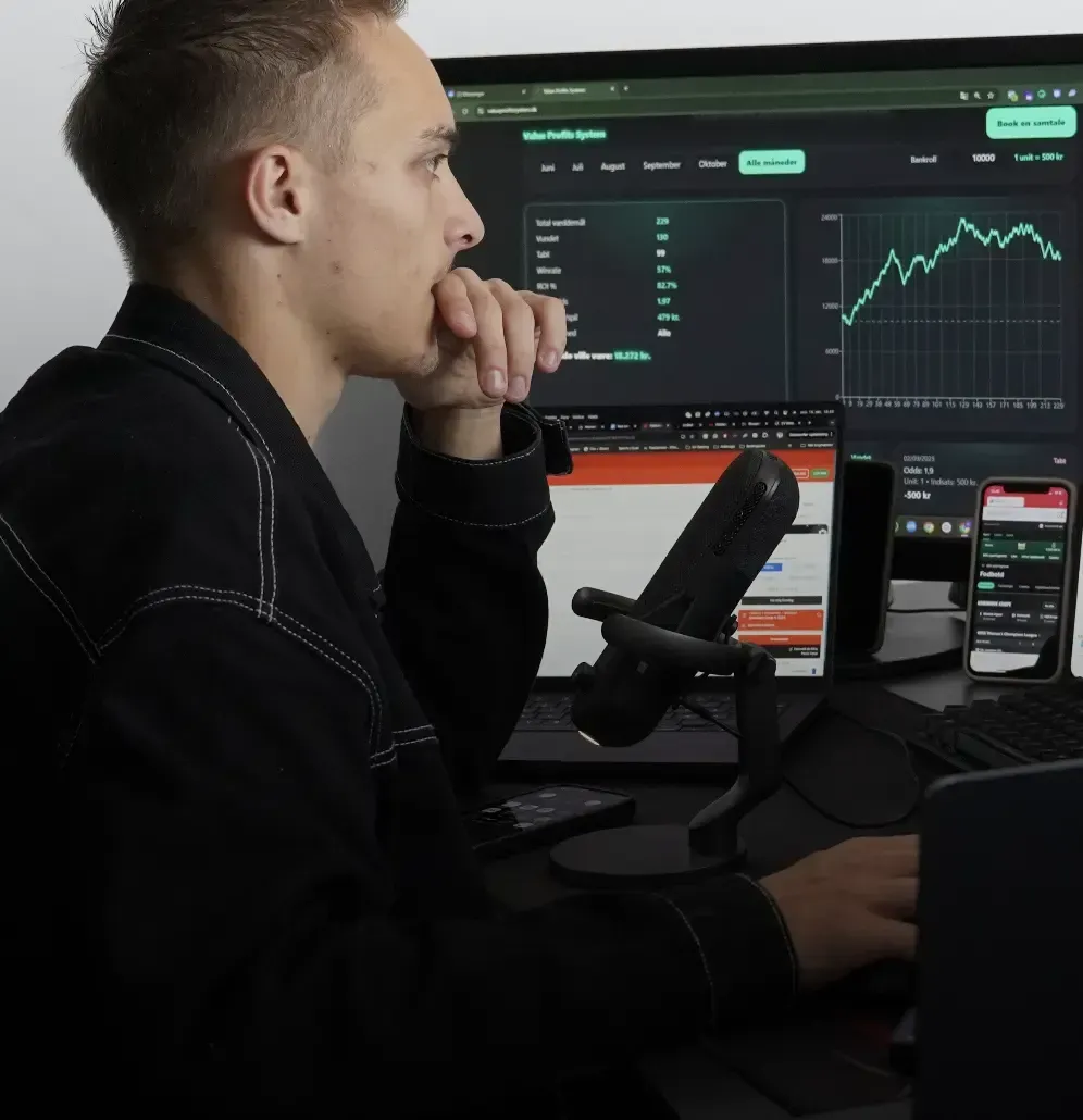 Forstå hele fundamentet bag Value Profits. Du lærer præcis, hvordan value betting fungerer i praksis, og hvad der skal til for at skabe en stabil og forudsigelig indkomst fra dag ét.